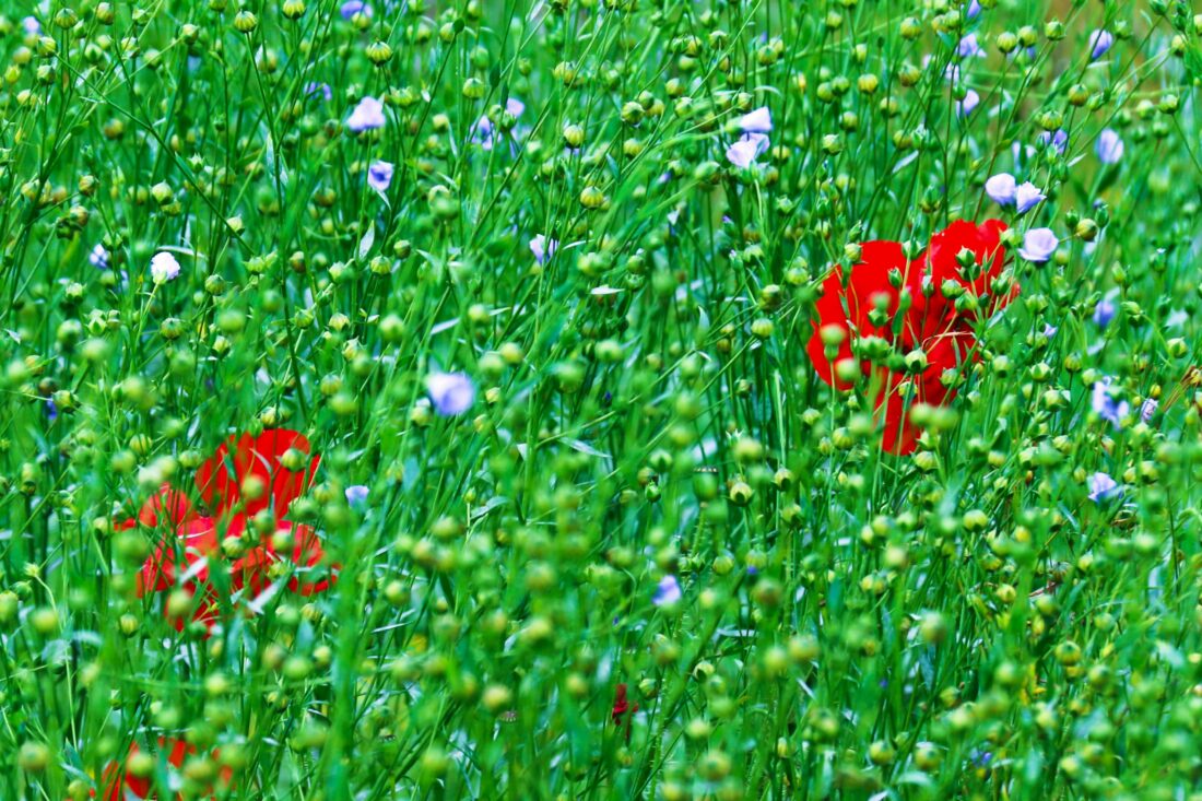Titre : CHAMP DE LIN ENTACHE DE CARMIN